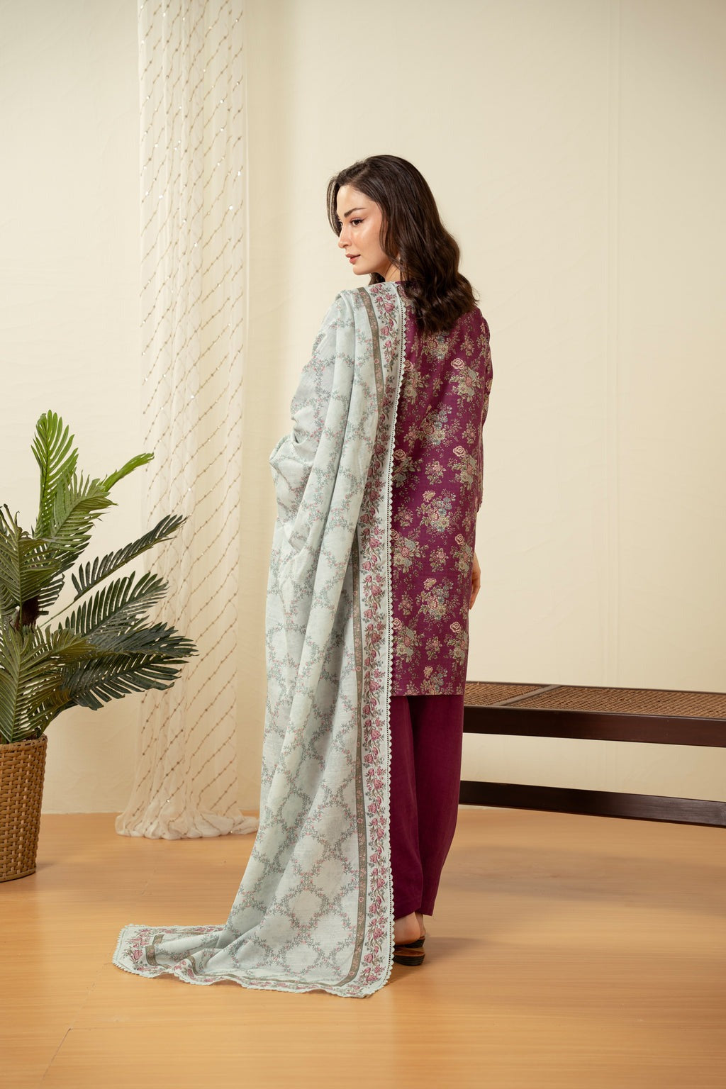 Printed shirt and dupatta with dyed bottom, showcasing a classic color palette with timeless floral pattern gives you a classic look in winters