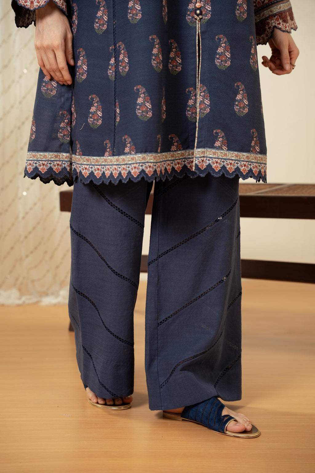 Elevate your style with this stunning three-piece set, featuring a beautifully printed bottom, a vibrant floral shirt and a intricately printed dupatta. This elegant ensemble is a must-have addition to your wardrobe